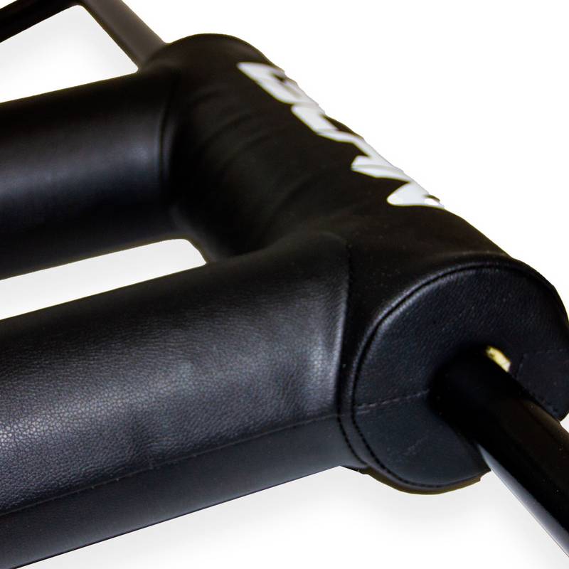 SAFETY SQUAT BAR LYCAN (BARRA DE SEGURIDAD) La distribución de peso se estabiliza entre la posición frontal y la posición alta de la parte trasera de la espalda, para crear un variación unica en la posición y en la generación de poder. Es una opción segura para progresiones de sentadilla o buscar levantamientos máximos. No es un opción que hace más sencillo los levantamientos, pero la barra de seguridad es conocida por incremetnar pesos máximos a comparación de la sentadilla trasera tradicional. Tambien es utilizado como alternativa para liberar estres en los hombros y muñecas, enfocandose en las piernas.