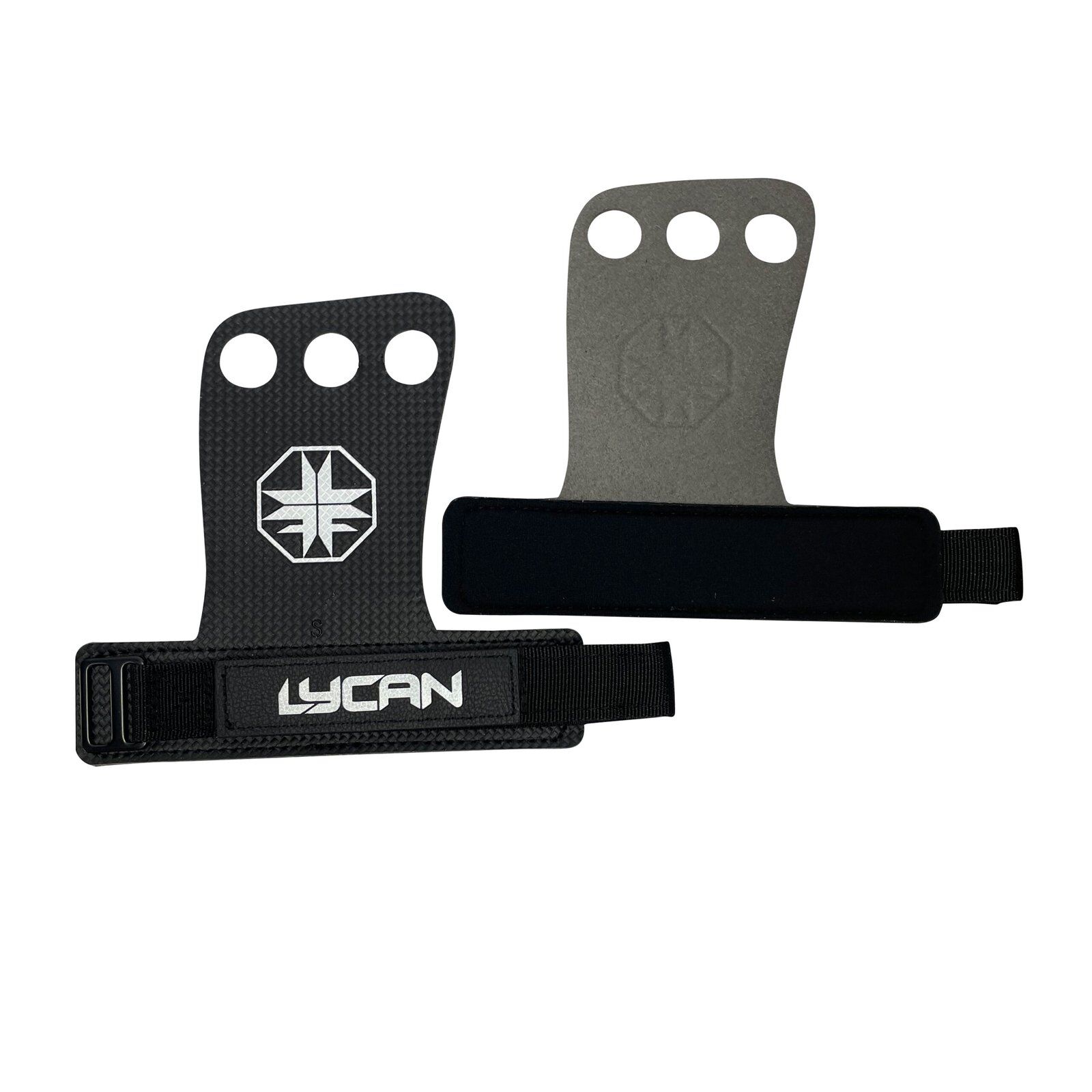 Versión con 3 agujeros para mayor seguridad y soporte. Ideal para el uso del agarre total “full grip” pulgar alrededor de la barra. Su diseño ofrece covertura total de la palma de la mano (dedos por los agujeros no tiene contacto con la callera). La fibra de carbono es un material flexible y esta especialmente diseñado para pegarse a barra de acero, incluso sin la necesidad de magnesio, creando una adheriencia consistente. Material compatible con el uso de magnesio. Ofrece soporte en cada repetición para uso en barra de acero, con moletado, anillas de madera etc