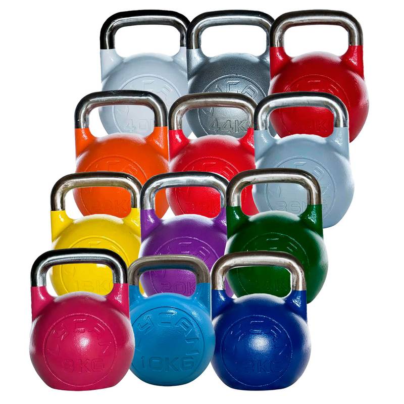 Los kettlebells de competición LYCAN están hechos de acero y son todos del mismo tamaño independientemente del peso para una experiencia de entrenamiento uniforme en todo momento. Están diseñadas para ejercicios de alta repetición. Si has utilizado barras, piensa en cuando entrenas con platos que son todos del mismo tamaño independientemente del peso para que tu forma sea siempre la misma durante los levantamientos olímpicos.