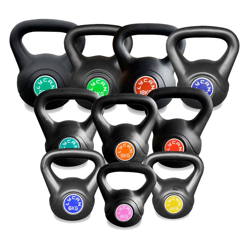 Desarrolle su fuerza con estas mancuernas profesionales con fondo plano, rodeadas de un revestimiento de plástico resistente a la suciedad. Kettlebells para uso en interiores y exteriores. Kettlebell cubierta de plástico resistente relleno arena a base de inyección a presión, una sola pieza. Incluye referencia de peso visible para su mejor identificación.