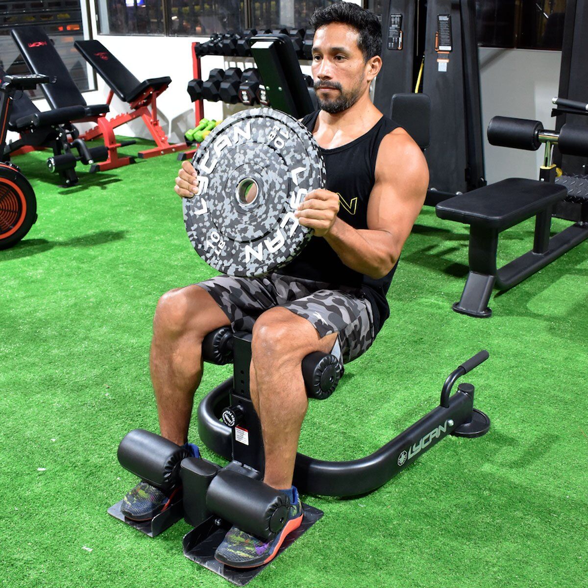 ” Sissy Squat LYCAN está diseñado para mantener tus piernas verticales mientras realizas sentadillas de pie. Cuenta con cojín acolchado que permite agacharse con mayor comodidad. El trabajo habitual con la Elite Sissy Squat LYCAN puede intensificarse empleando peso adicional para aumentar la resistencia del ejercicio.