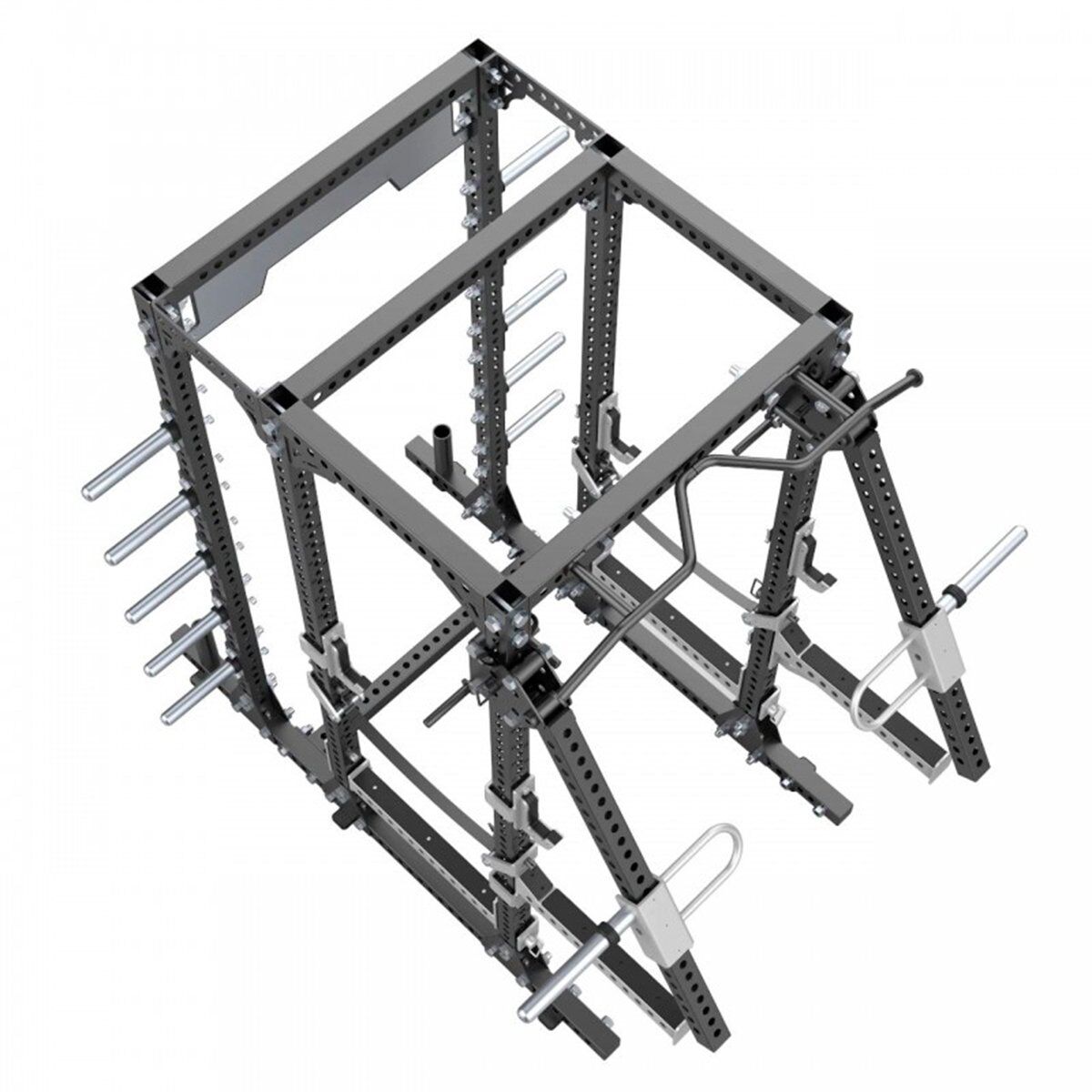 Lycan ofrece una nueva solución de entrenamiento para aquellos que no quieren sacrificar espacio, pero les gustan los movimientos tradicionales de “Jammer Press”. El rack de brazo de palanca se puede conectar y desconectar rápidamente del bastidor; su diseño modular utiliza movimientos que ahorran espacio para reemplazar piezas de palanca engorrosas. Se permiten movimientos tanto bilaterales como unilaterales, puedes estar de pie o sentado. Empujar, tirar, ponerse en cuclillas o remar, crea opciones de entrenamiento casi ilimitadas.