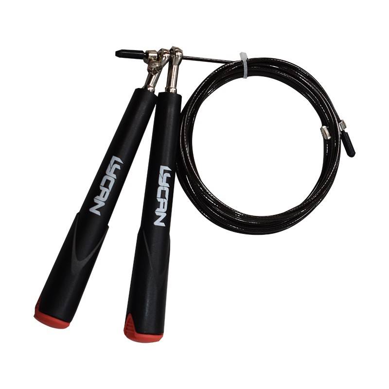 Cuerda rápida para saltar, mango plástico con balero y cuerda de acero recubierto con plástico. Rodamiento de bolas de 360