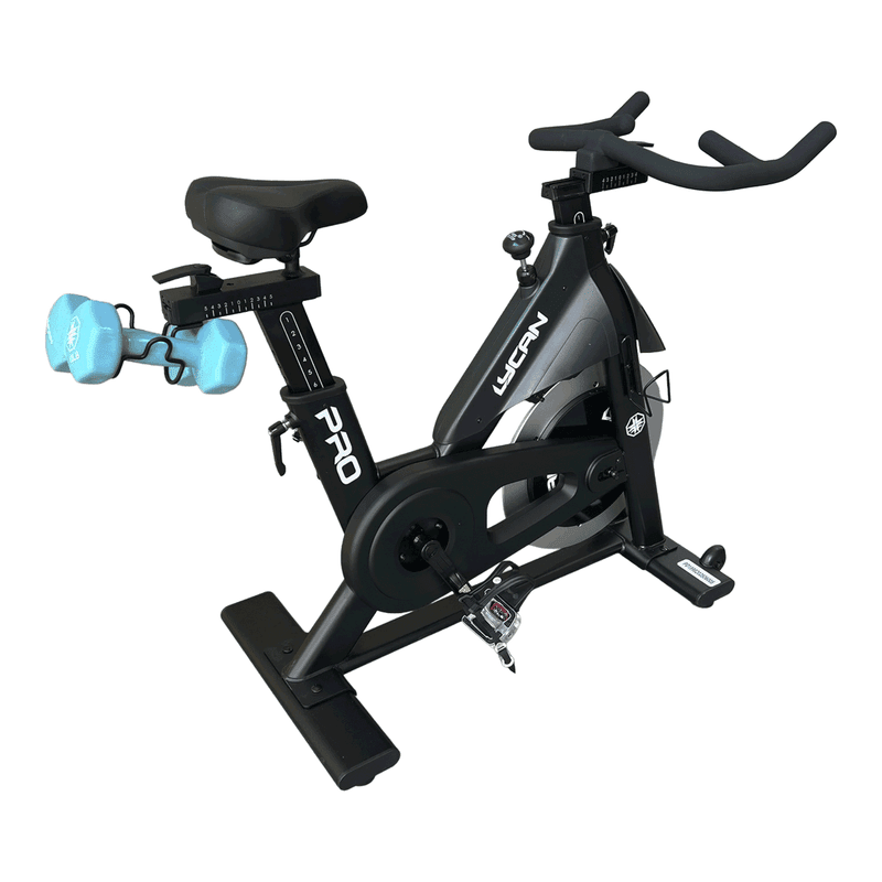 Spin Bike magnética LYCAN, diseño negro, ajuste completo, soportes y pedales SPD.